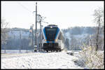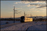 ein schönes Winterbild. Und die Fahrleitungsmaste sind schon im einsatz, tragen si doch schon das Kilometerschild 38.6