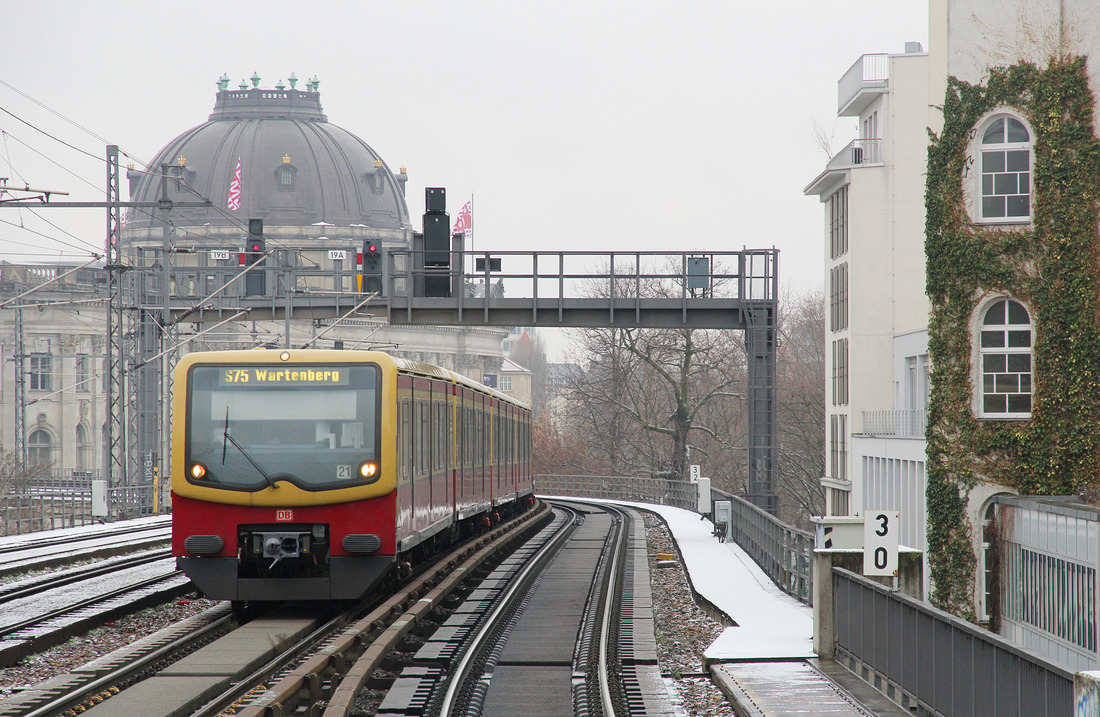eine sehr schöne Aufnahme von der Berliner S-Bahngarnitur. Das Bild zeigt auf beste Weise die Streckenführung der Berliner Stadtbahn durch historische Teile der Stadt.