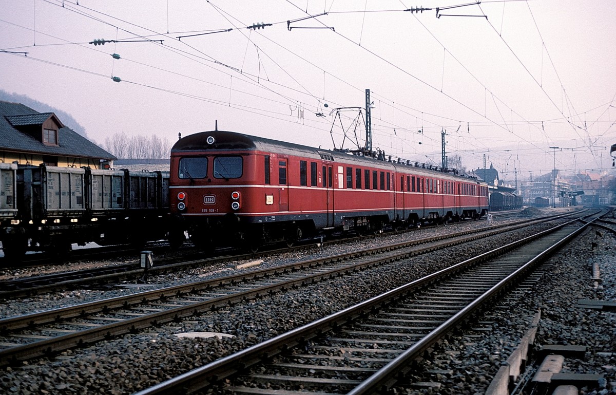 Hallo Werner, ist ein schönes Bild das du hier zeigst...dürfte kurz hinterm Böttinger Tunnel aufgenommen sein....wenn mich meine Orstkenntnis nicht verlassen hat. Heute fahren ja immer noch rote DB Triebzüge hier entlang, doch sind es 425ziger statt der schönen Altbautriebwagen. Gefällt mir sehr gut dein Bild. Gruß Andreas.