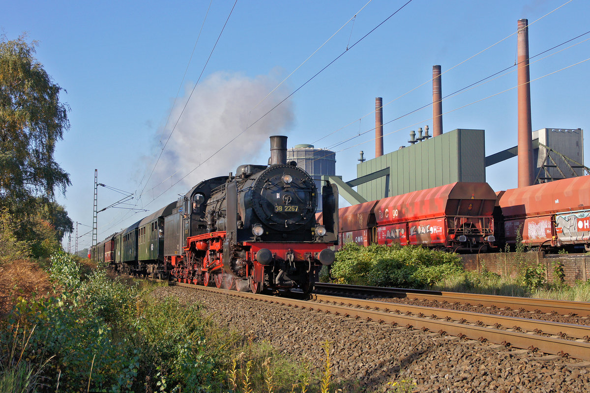 Abschied - Lokomotive 38 2267 auf der letzten Tour vor der HU am 14.10.2017 in Bottrop. (zum Bild)