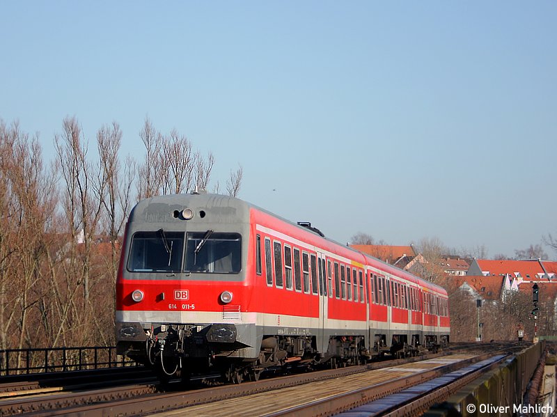 614 011/012 als Regionalbahn Nürnberg Hbf - Neuhaus (Pegnitz), am 18.2.2007 bei Nürnberg Ost (zum Bild)