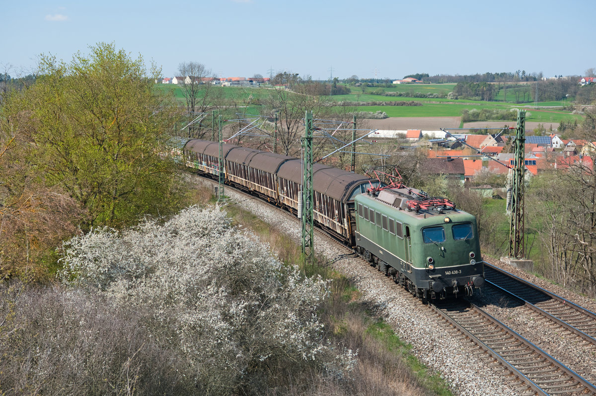 140 438 mit dem Henkelzug bei Ansbach Richtung Treuchtlingen, 18.04.2019 (zum Bild)