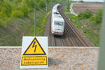 Hochspannung Lebensgefahr! ICE 26 von Wien Hbf nach Dortmund bei Markt Einersheim, 02.05.2019 (zum Bild)