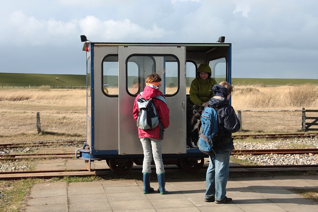 Ich mag diese "kleine Bahn" besonders, Fahrpläne gibt es nicht, jeder fährt nur wenn er muß aber trotzdem reizvoll! Das Beste daran, als Urlauber gehört man dazu und schon nach wenigen Tagen kennt man jeden auf der Hallig.