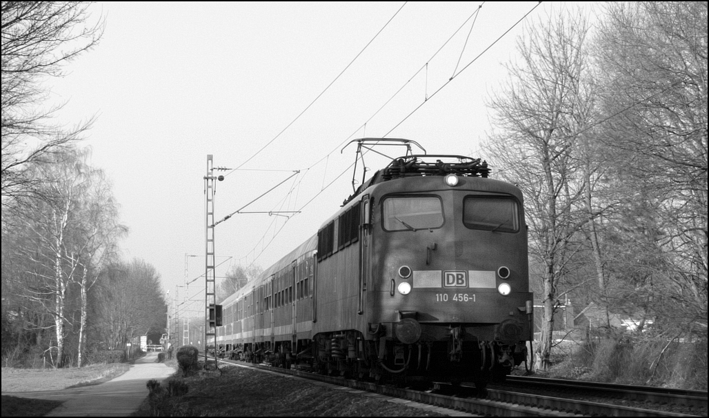ein schönes Bild von der 110 456-1 mit dem RE4 Verstärkerzug.