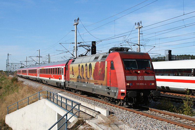 @Rolf: Bei diesem RE ist die 101 planmäßig. Das ist eine München-Nürnberg-Express, welcher planmäßig die NBS nutzt und deshalb Loks mit einer Vmax von mindestens 200 km/h braucht. Bei den Wagen handelt es sich auch um ehemalige IC Wagen, die in rot umlackiert wurden.