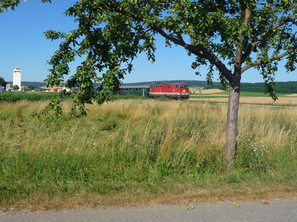 Die Stelle da ist echt toll, man kann bequem auf der Wiese an der Sonne sitzen und die vorbeifahrenden Züge fotografieren, die man jeweils schon lange vorher hört.