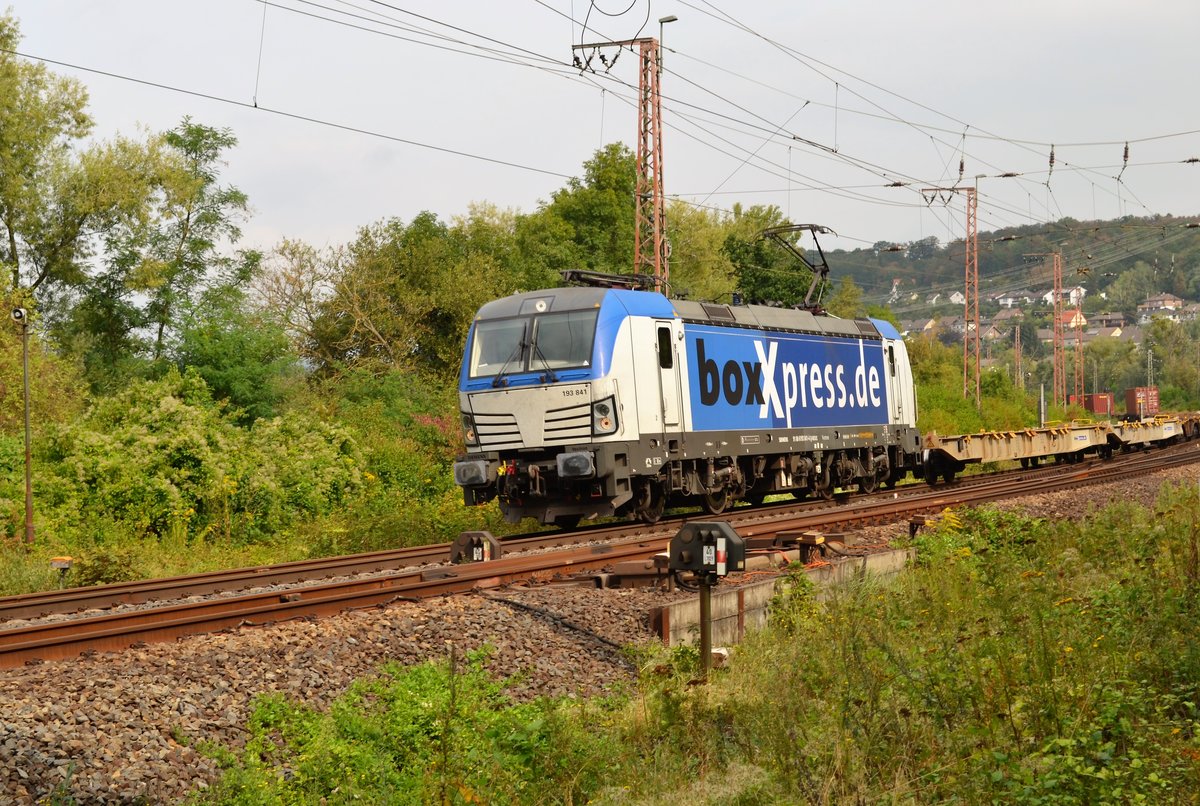 Ein schöne Bild von der 193 841, wobei ich hier wohl etwas mehr nach rechts gehalten hätte, so wäre der Gleisbogen und mehr vom Zug noch drauf.