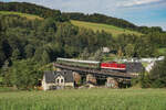 Am 17.08.2024 waren wir Samstag kurzentschlossen nach Markersbach gefahren, um mal wieder eine Sonderfahrt der Erzgebirgischen Aussichtsbahn zu fotografieren. Weils früh um die Zeit super an der Schwimmbadbrücke funktioniert, wurde dort in reichlicher Gesellschaft, Grüße an die Mitstreiter, die V100 im 90er DB-Retro Design mit DB Keks (202 646) samt Wagen mit DB Keks erwartet. (zum Bild)