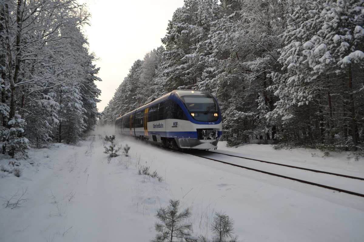 eine wunderschöne Aufnahme des NEB-Talent`s in der märkischen Heide, deshalb Heidekrautbahn.