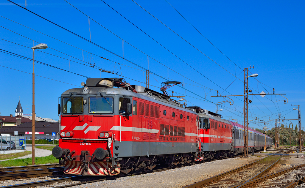 S´ 342-025+342-? ziehen EC151 'Emona' durch Pragersko Richtung Ljubljana. /17.10.2012 (naar de afbeelding)