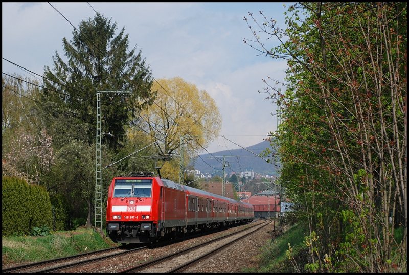 146 207 mit dem RE 19454 nach Stuttgart Hbf. Aufgenommen in Aalen am 24.April 2008. (zum Bild)