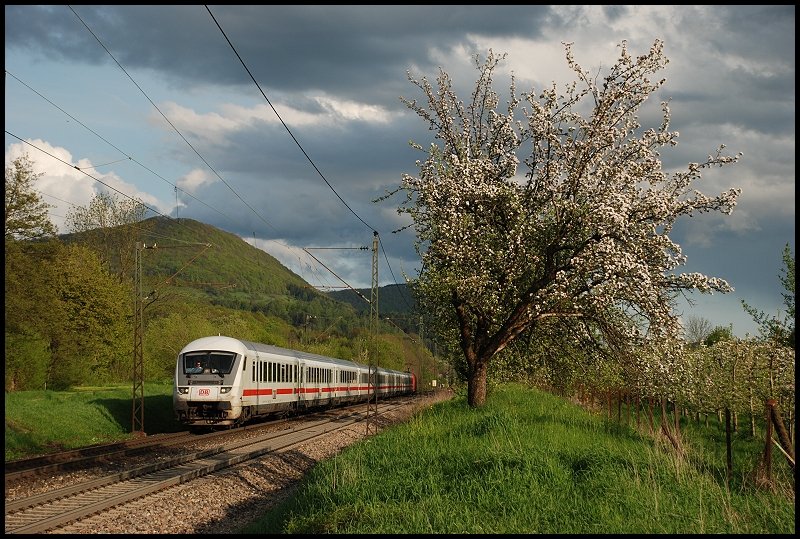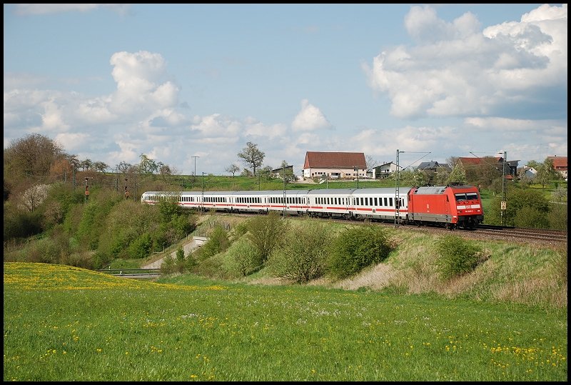 Eine 101er ist unterwegs nach Karlsruhe Hbf. Aufgenommen am 29.04.08 bei Goldshöfe. (zum Bild)