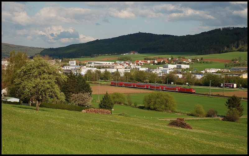 Eine 143er ist unterwegs nach Stuttgart Hbf. Aufgenommen am 05.05.08 bei Mögglingen. (zum Bild)
