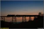 Im letzten Licht der bereits versunkenen Sonne überquert 50 3648 mit dem SEM-Museumszug am Abend des 26.04.08 das Markersbacher Viadukt. (zum Bild)
