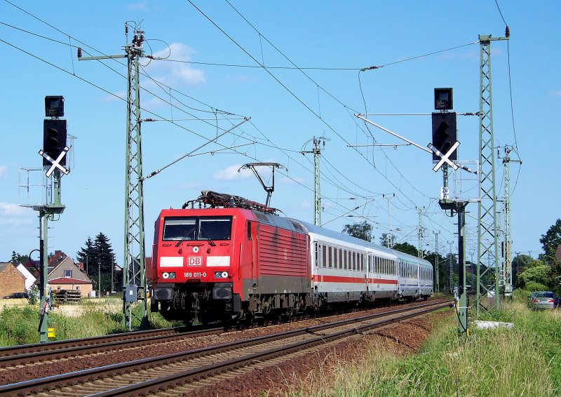 ich schließe mich Kays Kommentar an und wundere mich, dass die Lok am 24. Juni den gleichen Zug traktiere, aber - da hatte ich Gegenlichtpech - Seite Warnemünde stand.