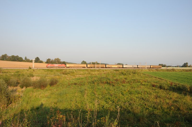 Eigentlich wartete ich auf Güterzüge aus der anderen Richtung. Dieser kam unerwartet. Die Loks ließen sich an dieser Stelle ausrollen, trotzdem wars ein aufregender Anblick in dieser Formation! ;-)