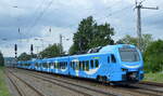 Überraschungstreffer: Ein Gespann aus vier FLIRT3  4-teiligen Triebzügen der BR 428 der Go-Ahead Bayern GmbH, ich hab nur die Nr. "ET 4.28 B" vom ersten vorne dran und "ET 4.38 B" vom letzten richtig erkennen können, am 31.08.21 Durchfahrt Bf. Saarmund. Viele Grüße an den Tf. !!! (zum Bild)