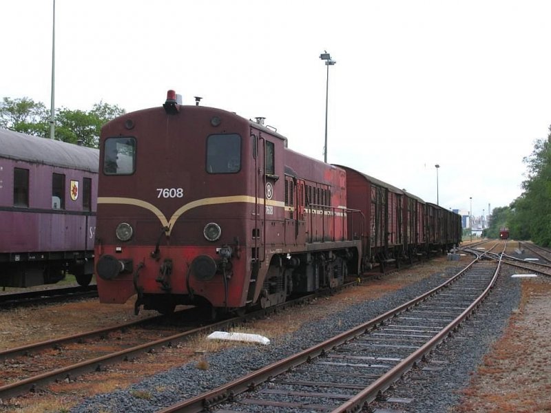 Die Belgische 7608 (NMBS/SNCB) in Veendam (die Niederlande) am 25-05-2006. Es handelt sich um eine ehemalige Diesellok der NS der BR 2200/2300 (2275, die einzige Lok der BR welche im original Farben erhalten ist). (zum Bild)