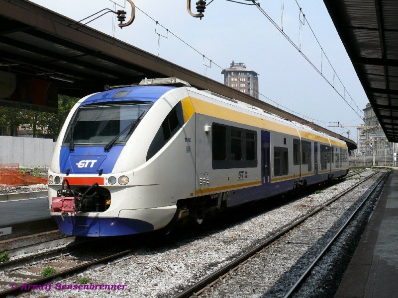 Der Elektrotriebwagen TTR003 = ALe501.803ST vom Typ Minuetto sonnt sich im Bahnhof Torino Porta-Susa. Er gehört der GTT (Gruppo-Torinese-Trasporti) vormals SATTI, welche im Großraum Turin tätig ist. 30.08.2007 (voir l'image)
