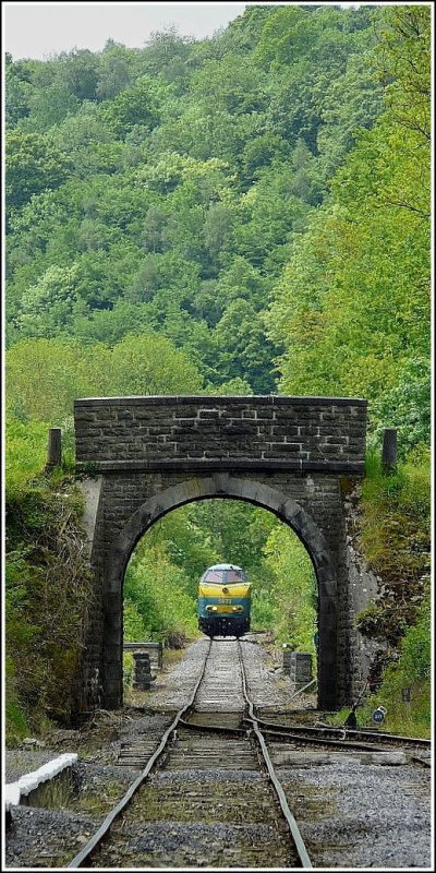 Die Museumsstrecke "Ligne du Bocq" von Ciney nach Purnode führt durch ein wildromantisches Tal und birgt so manches Kleinod, wie diese alte Steinbrücke. Bild aufgenommen in Dorinne-Durnal am 16.05.09 (Jeanny) (voir l'image)