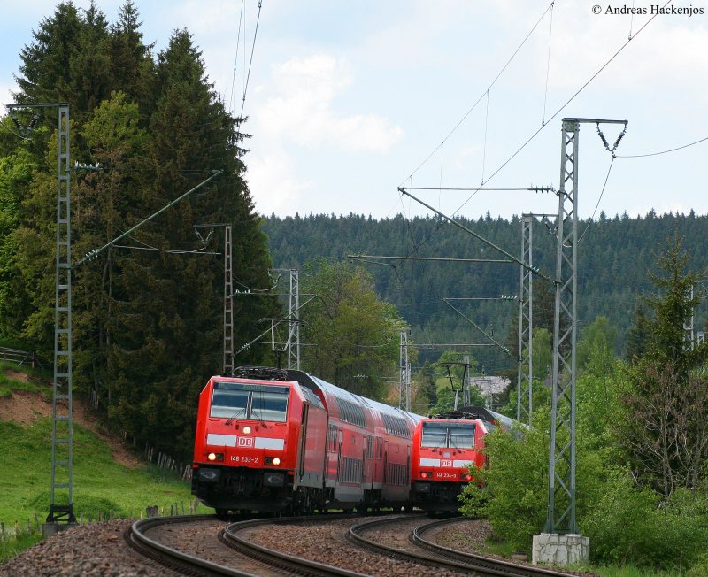 RE 5192 (Kreuzlingen-Karlsruhe)mi t Schublok 146 234-0 begegnet 146 233-2 "Donaueschingen" mit dem RE 4713 (Karlsruhe-Konstanz) am km 69,1 19.5.09 (voir l'image)