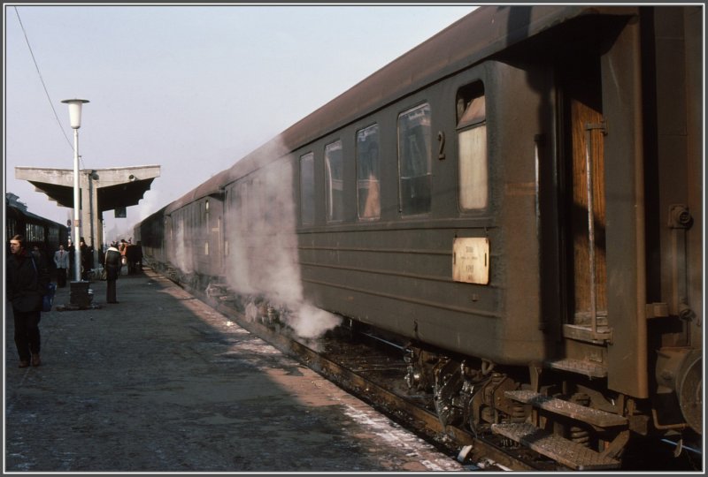 Der bunte Zug mit dem weissen Flocken - super! Jedenfalls für den Betrachter; der Fotograf kann wohl weniger von einem genüßlichen Fototag schwärmen.