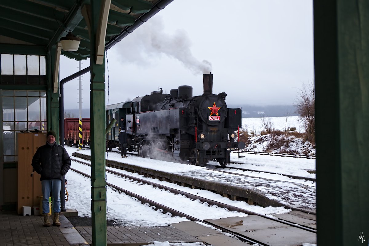 Mit viel Rauch fuhr die 431.032 (ex ÖBB 93.1360) aus Syrenov in Richtung Turnov aus. (13.01.2019) (zum Bild)