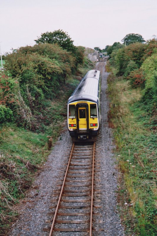 Die rostigen Schienen schließen darauf, dass es zwischen zwei Zugspausen geregnet hat und die Schienen Zeit hatte zu rosten. Ein Blick auf die Karte betätigt, was ich vermutete: Cloghjordan liegt auf der Strecke Limerick - Ballybrophy und wird täglich außer So von zwei Zugspaaren (So: 1x) berumpelt.