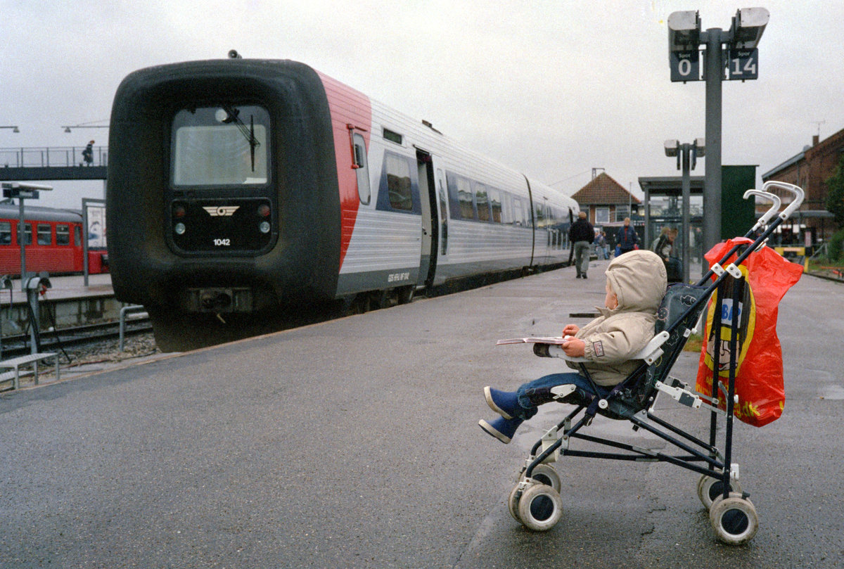 Ja, Stefan habe ich sehr früh zu verschiedenen Bahnen in der Umgebung von Kopenhagen gebracht, und wir haben am Anfang auch kürzere Fahrten mit diesen Bahnen gemacht. - Bahnfotos zu betrachten war ihm ein großes Vergnügen, weshalb ich ihm meine alten Straßenbahnfotos aus Papier gezeigt habe, und ich habe wieder begonnen, mehr Farbnegative als Dias zu machen. Die Negativfilme eigneten sich ja auch für Fotos mit Stefan als Hauptmotiv, Bilder, die eine Zeitlang in weit größeren Mengen als Bahnfotos gemacht wurden.
