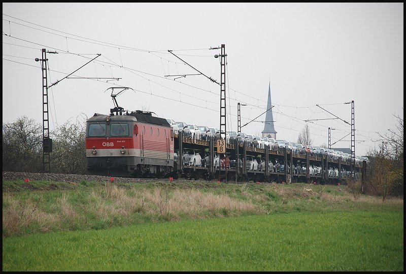 An diesem Tag gab es ziemlich gemischtes Wetter. Ein paar Minuten bevor ich dieses Bild aufgenommen hatte, war die Sonne drausen. Es sah richtig klasse aus mit Sonne und im Hintergrund tief schwarze Wolken. Leider ist wenige Minuten vor dem Zug die Sonne untergetaucht.