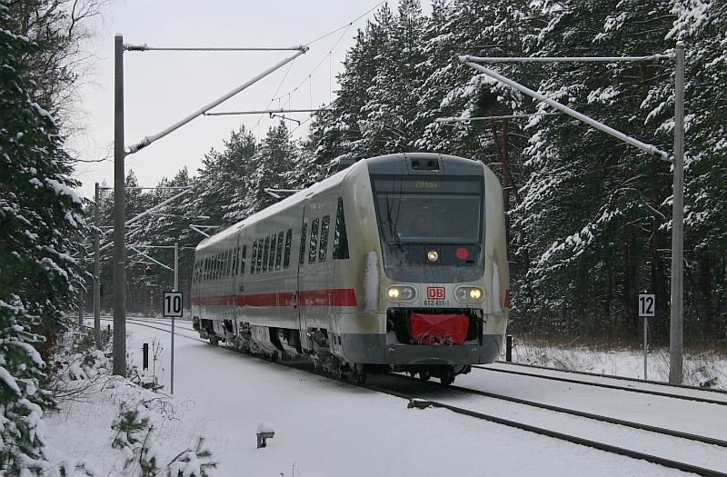 Perfekt getarnt fährt 612491-1 am 27.01.05 als RE 17025 durch die Dresdener Heide. (al imagen)