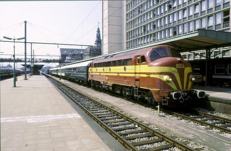 Lok 1604 mit einem CFL-Zug in Luxemburg Bahnhof. 6.Juli 1989. (zum Bild)