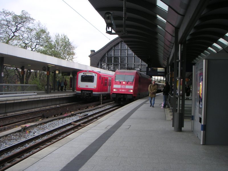 Eine Br 101 ohne Zug am 5.3.2004 in Hamburg Dammtor.Eine so dichte Zugfolge wie dort hab ich vorher noch nicht gesehen (voir l'image)