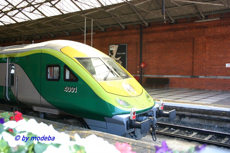 Klasse Foto! Aber mit Class 4000 ist nichts - dröhnende Motoren pusten rauchend zum Wohlbefinden der Reisenden, nicht aber zur Fortbewegung. Hier sehen wir nichts anderes als ein Steuerwagen (und dadurch wortgemäss antriebslos)aber mit Generator! Irisch, denn Dieselloks in Irland haben keine Energieversorgung für ihren Anhang (sprich Reisewagen), das ist wiederum amerikanisch.