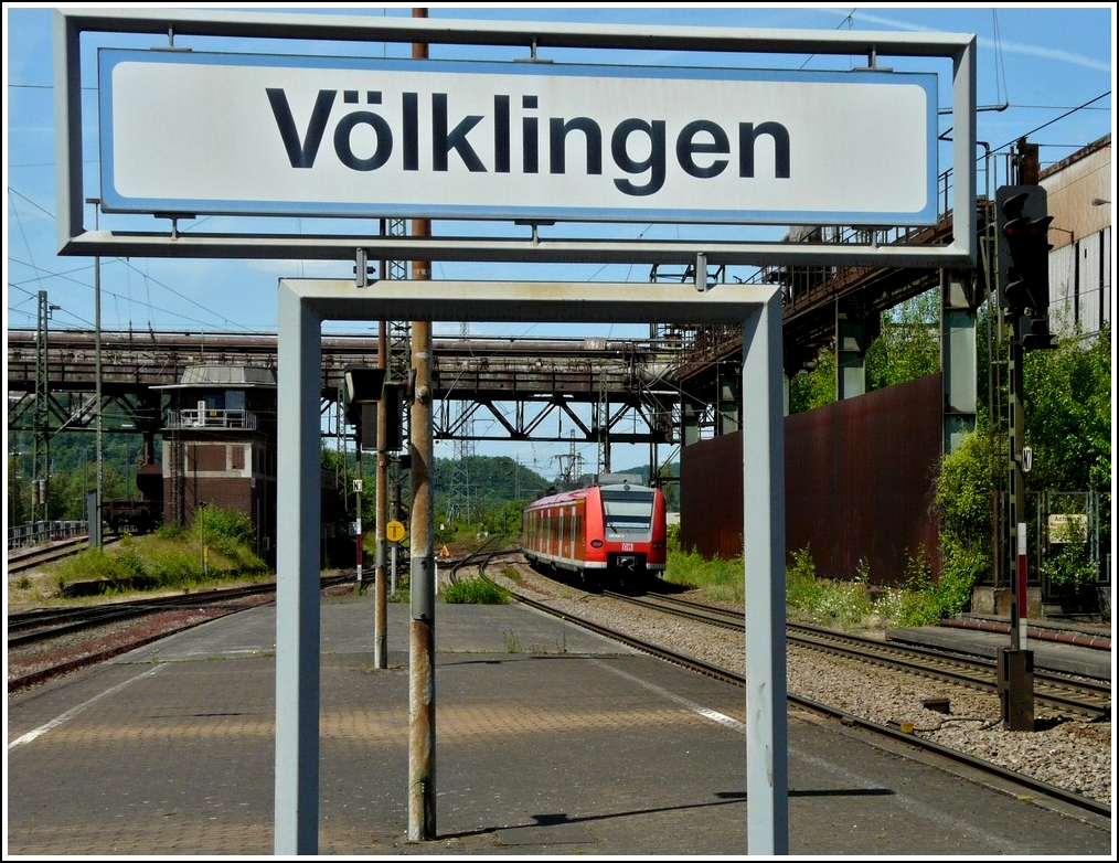Ein Quietschi verlässt am 29.05.2011 den Bahnhof von Völklingen in Richtung Saarlouis. (Hans) (zum Bild)
