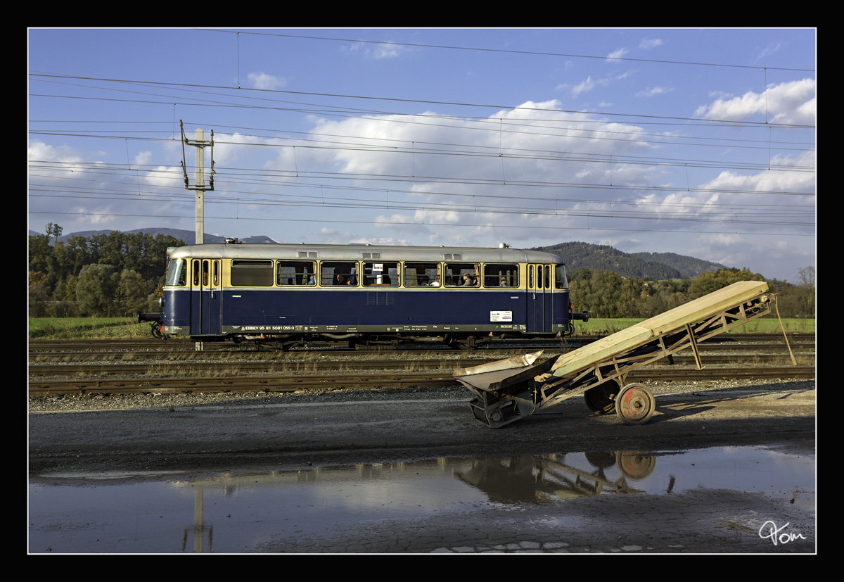 meine "Vorredner" haben natürlich Recht. Deine Aufnahme ist sehr schön - der Uerdinger Schienenbus, der besondere Arbeitswagen, das Spiegelbild der beiden und die sehr schöne Landschaft machen dieses Foto zu einem besonders interessanten Bild.