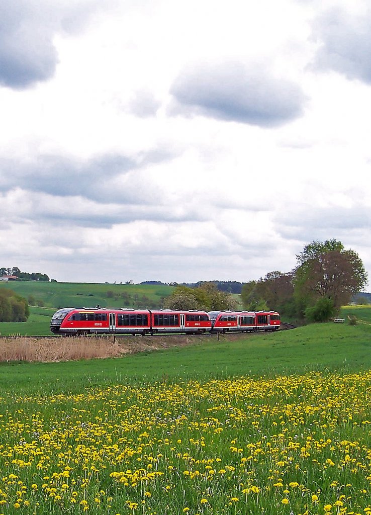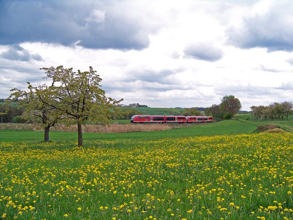 Danke dir fürs Lob, Jens! Dass an diesem Tag in Doppeltraktion gefahren wurde, hat leider das Dorf Kalchreuth in den Hintergrund rücken lassen. An dieser Stelle gibt es auch sehr viele Kirschbäume, deren Blüte ich aber um einige Tage verpasst habe... Weiterhin ist mir aufgefallen, dass der hintere 642er auf diesem Bild einen gelben 1.-Klasse Streifen über den (in Fahrtrichtung) rechten, vorderen Fenstern hat - auf Bild-Nr. 403602 ist der entsprechende Bereich in Fahrtrichtung links als 2. Klasse gekennzeichnet ;)