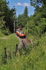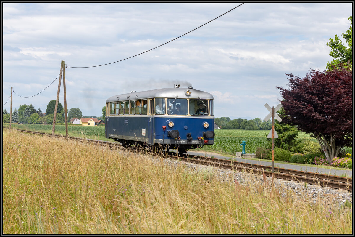 Der Triebwagen dürfte ET 10.106 sein, ein ehemaliger ÖBB 4060, heute wohl in Strasshof. Die Lok könnte vielleicht V 10.021 mit der ungewöhnlichen Geschichte sein.