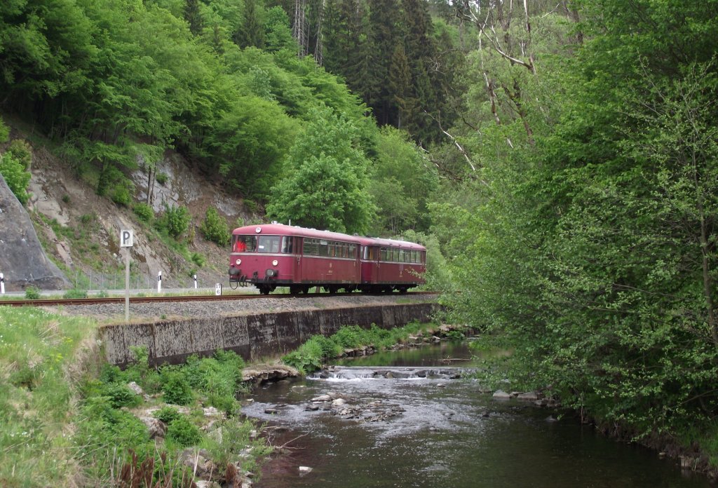 großartiges Bild des Motivklassikers der Rodachtalbahn (meiner Heimatstrecke)! Spitzenmäßig! Gefällt mir super gut!