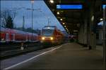 Seit Fahrplanwechsel sind die Taucherbrillen, die die EuRegios zwischen Bratislava und Wien bespannt haben, Geschichte. Das Foto vom 8.12.2007 zeigt den letzten ER, der mit einer Lok der Baureihe 754 bespannt war. ER 2528 "Schloss Hof", auf der Fahrt von Wien nach Bratislava bei der Ausfahrt aus Siebenbrunn-Leopoldsdorf. (Mitziehter bei 1/50, 18mm (27 mm KB) und Blende 3,5) (zum Bild)