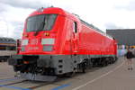 Die Fa. Skoda Transportation präsentiert auf der InnoTrans am 22.09.2018 die Ellok Emil Zatopek 102 006 für den Einsatz des München.Nürnberg-Expresses. (naar de afbeelding)