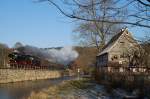 Herrlicher Winterdampf, zwar ohne Schnee, aber kann sich trotzdem sehen lassen. Gut gewählte Fotostelle, schön, dass du den Bach und das Gebäude rechts mit in das Bild genommen hast. Durch und durch eine gelungene Aufnahme, das Bild hängt allerdings nach rechts, gehört meiner Meinung nach etwas gedreht.