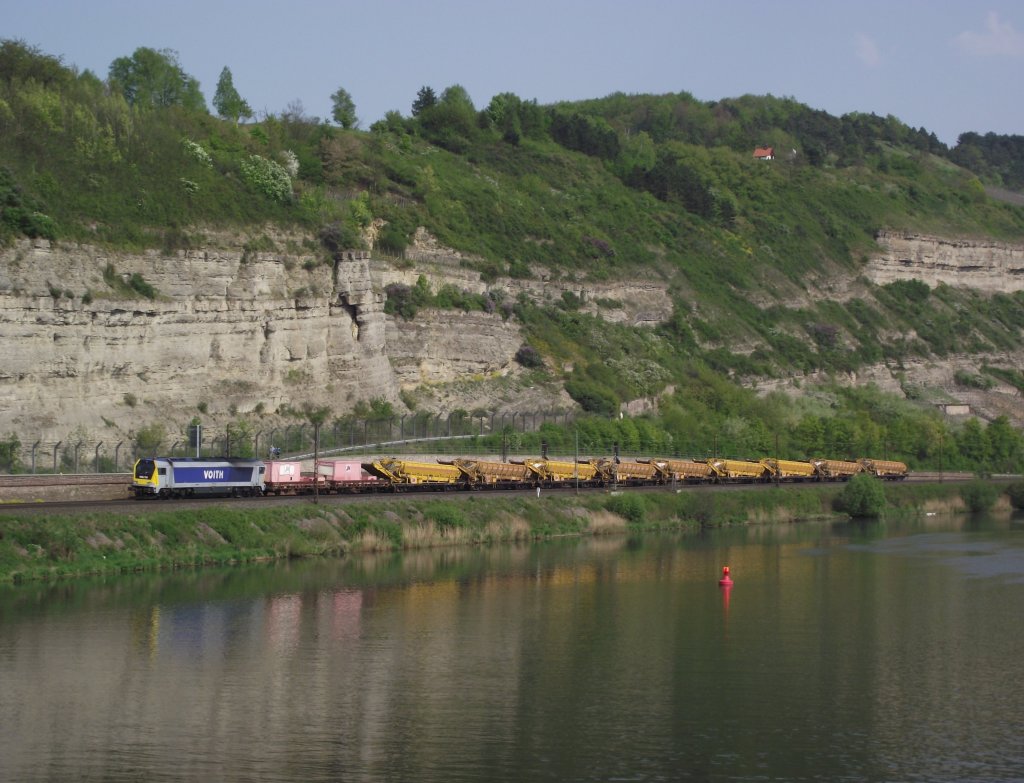 Schön erwischt! Eisenbahn und Landschaft auf einem Bild! Vor allem das kleine Häuschen rechts oben im Wald gefällt mir!