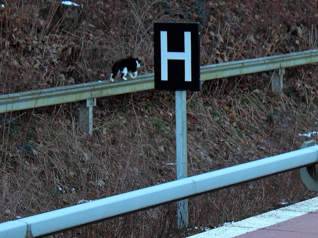 vielleicht steckt ja ein leckeres Mäuschen drunter? Wer weiß? Dann gäbe es natürlich für einen Vertreter dieser Tiergattung, auch trotz Haltetafel, kein "Halten" mehr! ;-) Sehr schön festgehaltene Szene!