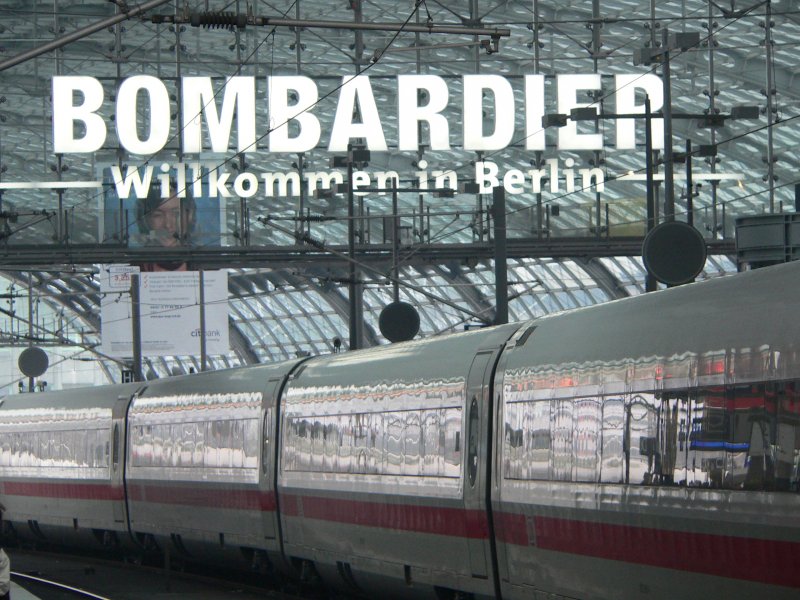 ja, stimmt, habe meine Bilder auch mal gecheckt. Es war eher so: steht man am anderen Ende Bahnsteigs, kann man nur " Bombardier Berlin" sehen, vor allem, wenn es voll ist und ein Zug im Bahnhof steht, und es standen echt Fahrgäste neben mir die sagten " Ey, schau mal da hinten, Bombardier Berlin" , warum soll man denn Berlin bombardieren?" , so bin ich auf diese Werbung erst aufmerksam geworden!