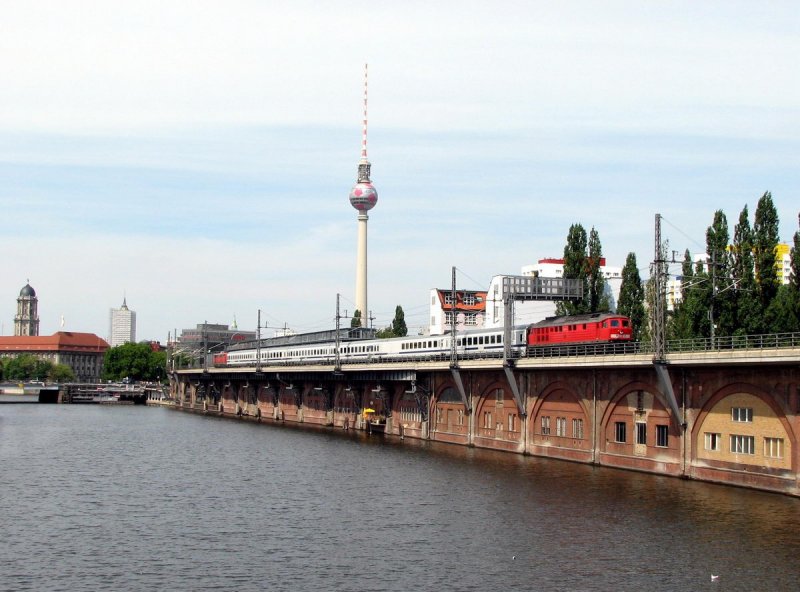 232 209 mit EC 45 auf der Berliner Stadtbahn (Jannowitzbrücke) (01.08.2006) (zum Bild)