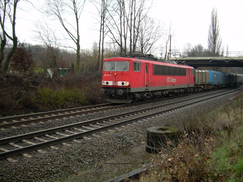 155 117 am 3.3.2007 mit dem Alcan Zug in Hannover/Limmer Richtung Seelze (zum Bild)