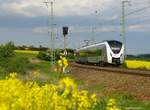 Aktuell wird der RE 3 Hof - Dresden u.z. mit diesen Silberwürsten gefahren. Die MRB hat die Ausschreibung gewonnen und setzt die Fahrzeuge als 3er oder 5er Einheit ein. Hier ein Nachschuß bei Feilitzsch mit Frühlingszutaten aus Raps, aufgenommen am 9.Mai 2018. (naar de afbeelding)