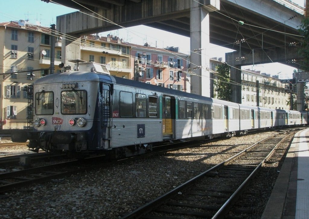 Schönes Foto von einem interessanten Zug. Im Sommer drauf sind wir mit so einem von Nice Ville nach Mandelieu la Napoule gefahren.